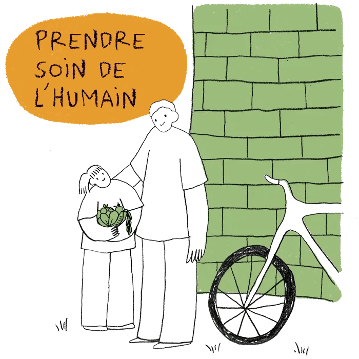 La mobilité douce, la biodiversité, une alimentation locale résiliente, la reconnexion à la nature et le partage des savoir-faire